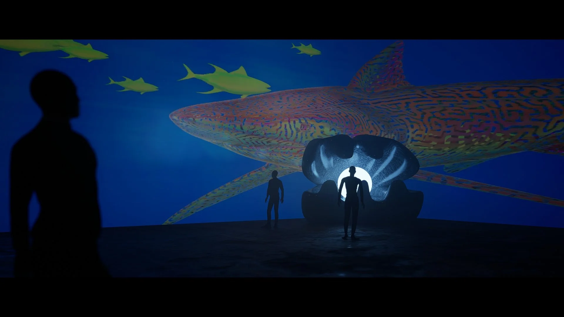 Description: The art is a fantasy underwater scene with candified animals living under the sea. Every part of their world is inspired by dreams, mythology, psychedelia, animation and of course the broad language of rainbow sweets. Their materials are meant to be soft gummy textures, emphasizing the tactility of the objects depicted. They are characterized by their vibrant, whimsical designs, including reaction diffusion, rainbow gradients, and bright colors. I used bold, contrasting colors and crisp lines to imbue the piece with a playful yet precise aesthetic, emblematic of the Pop Art movement’s focus on everyday objects and consumer goods.
